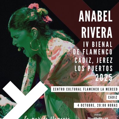 Reconocida como una de las grandes voces del flamenco actual, el estilo de Anabel Rivera destaca por estar intensamente ligado a la tradición gaditana con interpretaciones magistrales de Alegrías, Tientos, Bulerías, Tangos, Cantiñas y Fandangos.