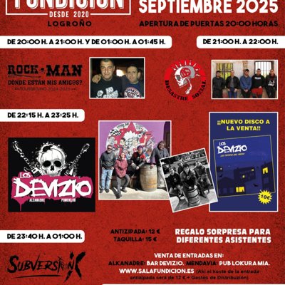 SUBVERSIÓN X + LOS DEVIZIO + DESASTRE SOZIAL + ROCK MAN - FUNDICIÓN