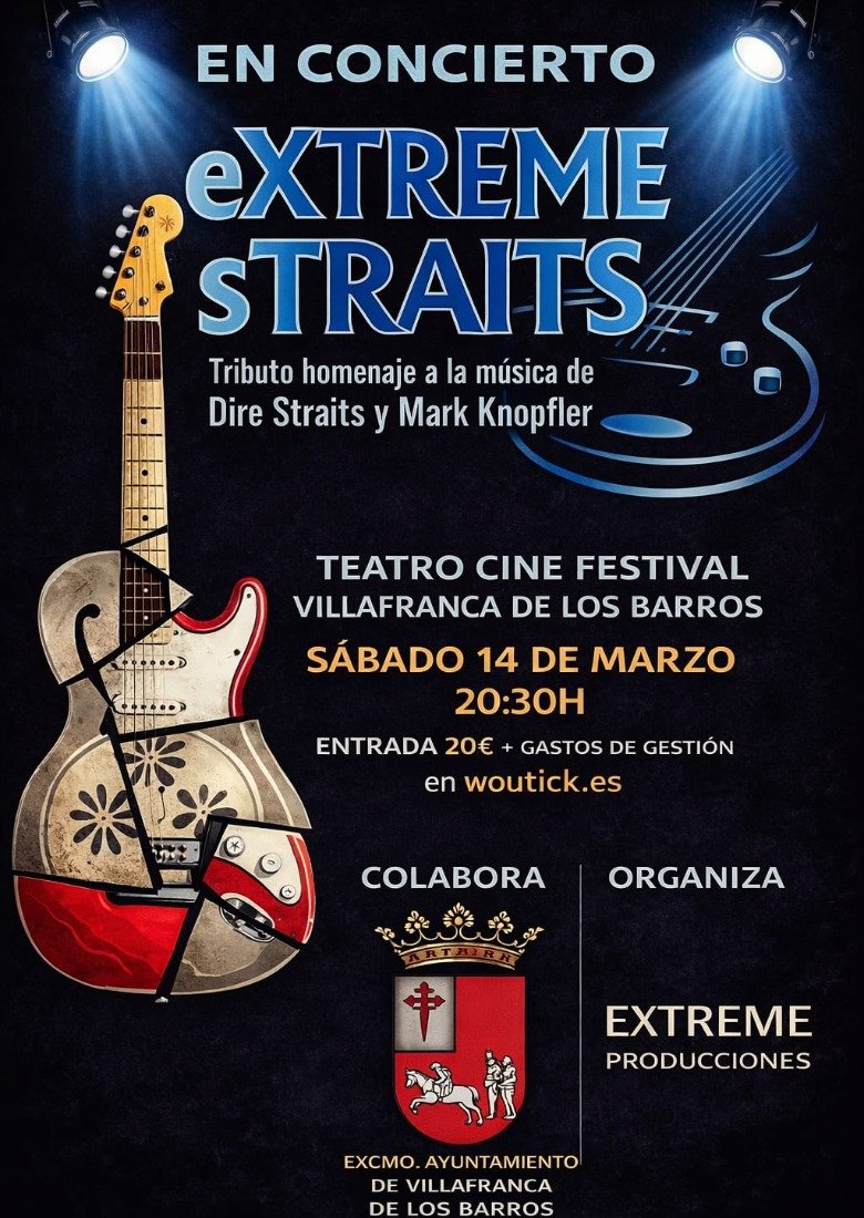 Un homenaje a la música de Dire Straits y Mark Knopfler, interpretado por Extreme Straits, 6 músicos extremeños que hacen un repaso a los temas más famosos de Dire Straits, discos en solitario de Mark Knopfler y sus bandas sonoras de películas