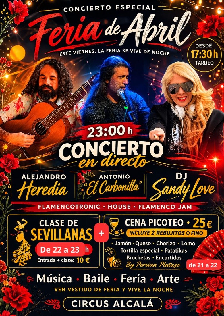 🎟️ PLANAZO FERIA – TODO INCLUIDO Cena + clase + concierto y sesión Dj hasta 6 am 💰 25 €