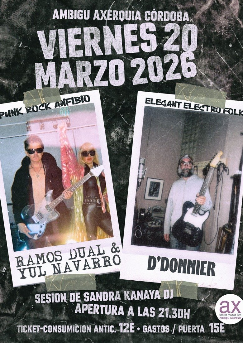 Ambigú La Axerquía mantiene su espíritu por traerte lo más interesante de la música independiente, esta vez con dos propuestas bien diferenciadas, pero con un hilo conductor: la música orgánica creada con pasión, música honesta y sin concesiones.