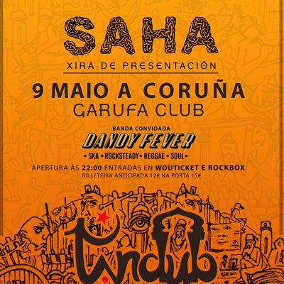 O vindeiro venres 9 de Maio de 2025, no Garufa Club (A Coruña), a banda TANDUB presenta ao vivo o seu novo traballo discografico “SAHA”. Os locais DANDY FEVER será a banda convidada.